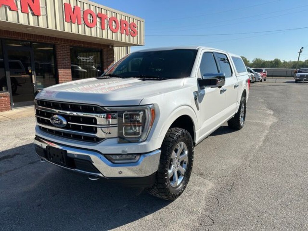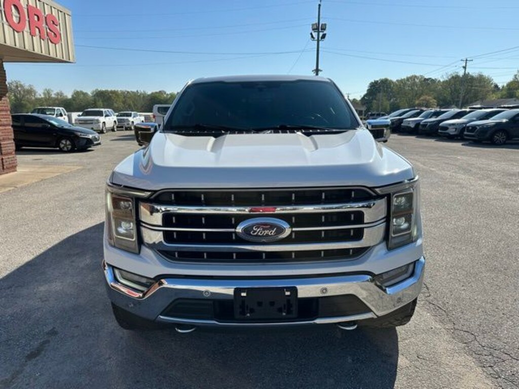 White 2023 Ford F-150 Lariat 4WD 10-Speed Automatic 3.5L V6 EcoBoost 4WD, ABS brakes, Alloy wheels, Compass, Electronic Stability Control, Front dual zone A/C, Heated door mirrors, Heated front seats, Illuminated entry, Low tire pressure warning, Remote keyless entry, Traction control.